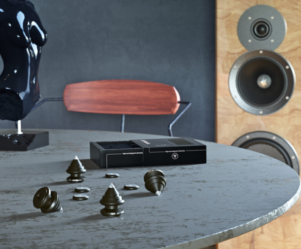 VIABLUE™ QTC Spikes verhindern die Übertragung störender Schwingungen auf Mobiliar und Flächen und sorgen so für einen klaren, sauberen und differenzierten Klang. Die formschönen Spikes sind eine optimale Ergänzung für Lautsprecher und Geräte wie Plattenspieler und Röhrenverstärker.