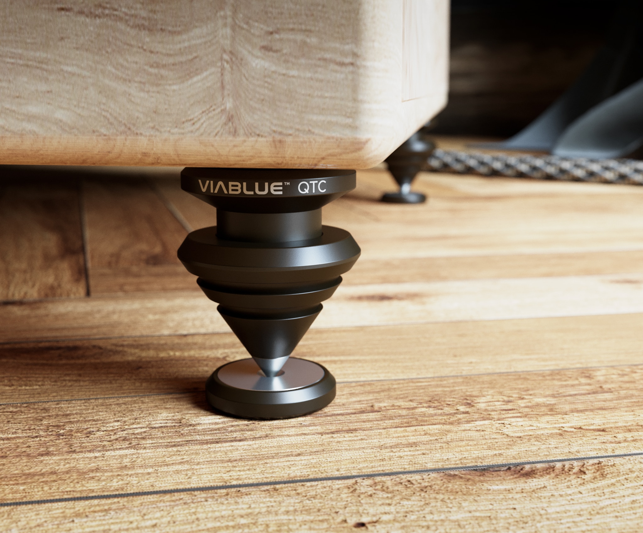 VIABLUE™ QTC Spikes verhindern die Übertragung störender Schwingungen auf Mobiliar und Flächen und sorgen so für einen klaren, sauberen und differenzierten Klang. Die formschönen Spikes sind eine optimale Ergänzung für Lautsprecher und Geräte wie Plattenspieler und Röhrenverstärker.