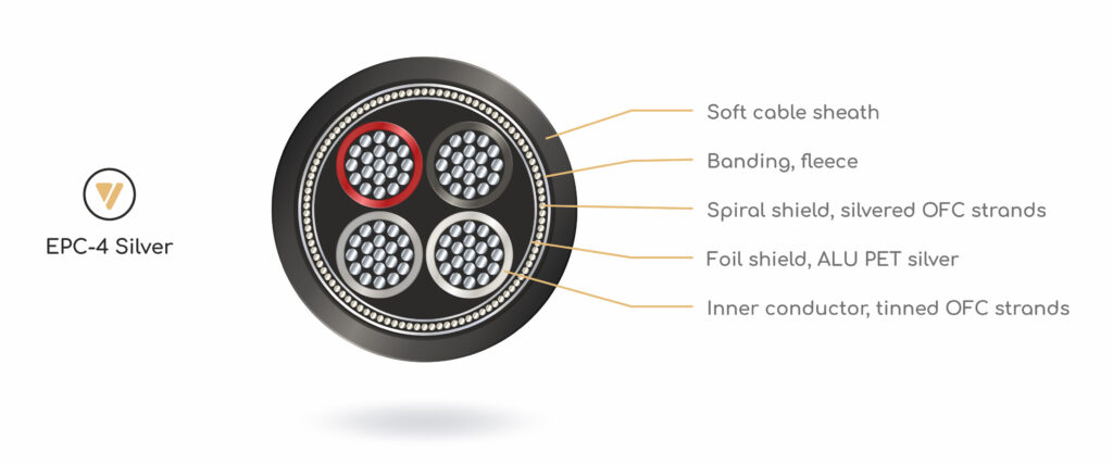 Silvered OFC strands guarantee a brilliant and precise rendition of high frequencies.