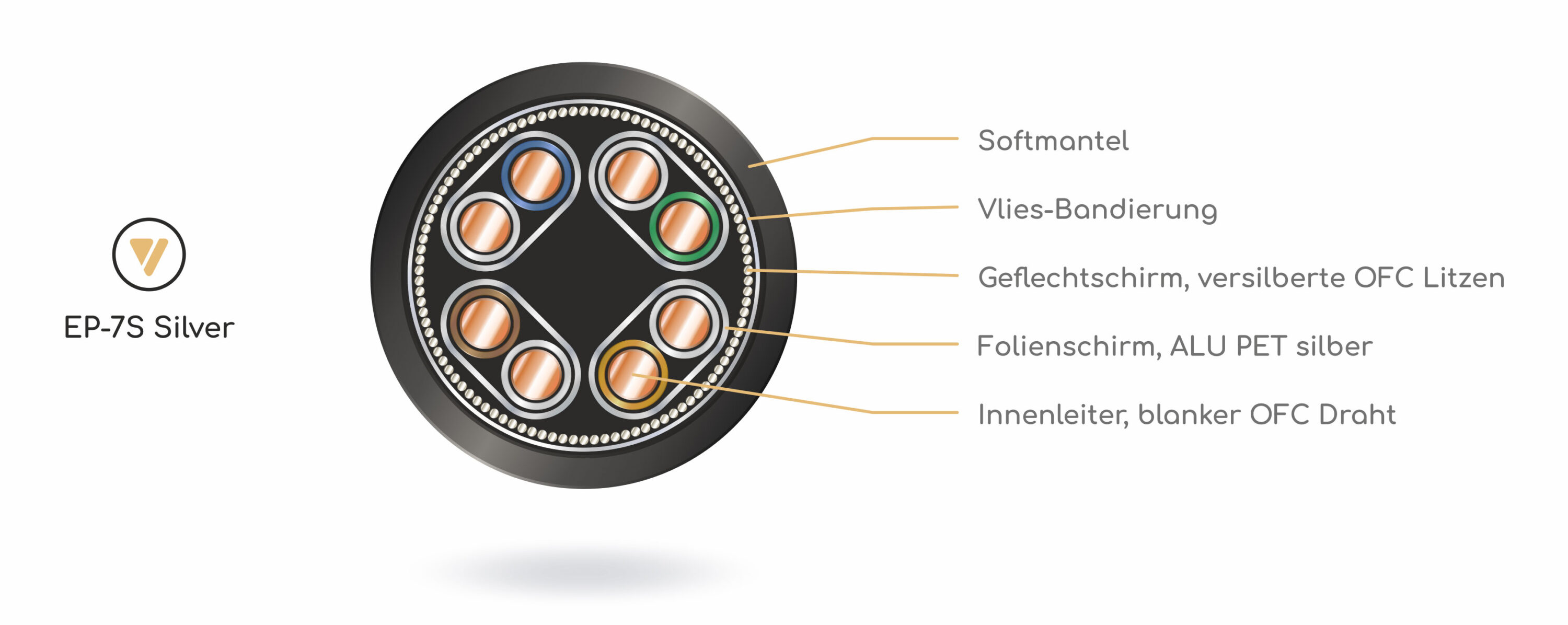 • 8 Innenadern aus OFC Kupferdraht