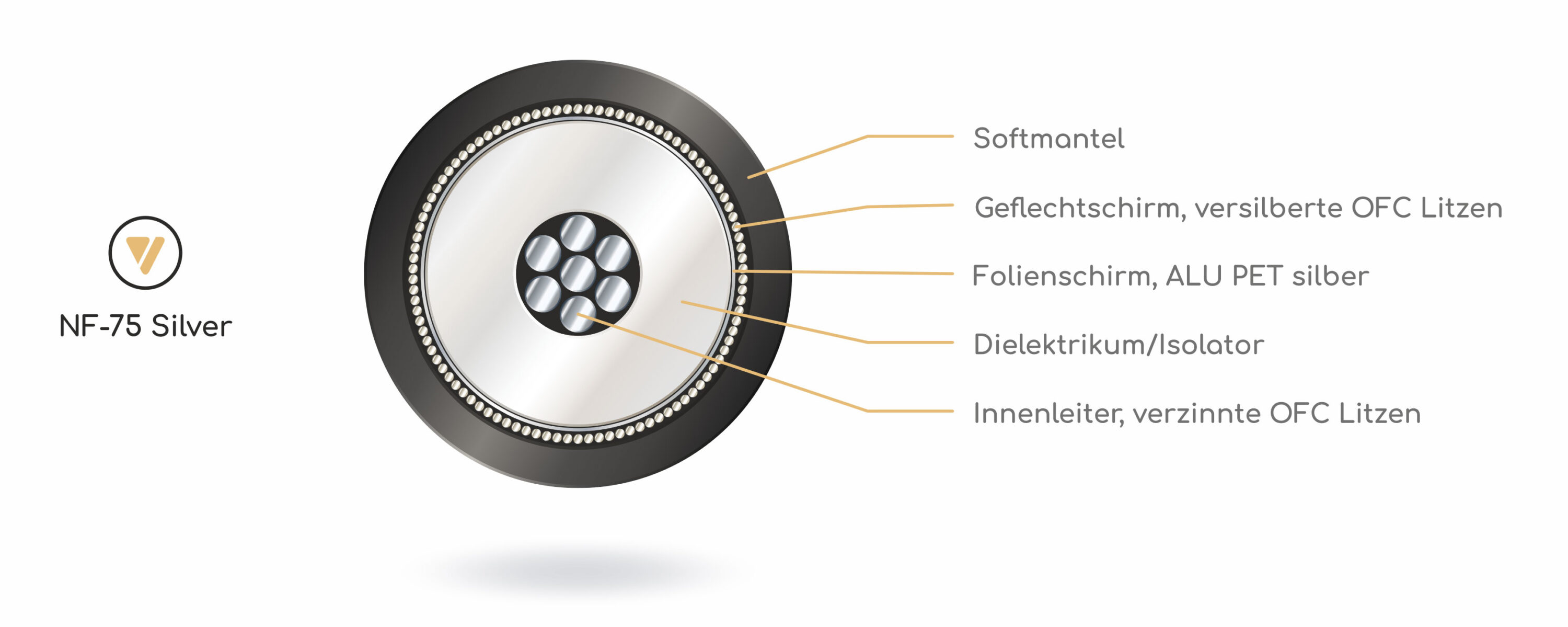 VIABLUE™ NF-75 Silver S/PDIF Cinchkabel sind koaxiale High-End-Digitalkabel für vollständige, exakte und schnellste Übertragung von elektrischen Digitalsignalen über sämtliche Distanzen.