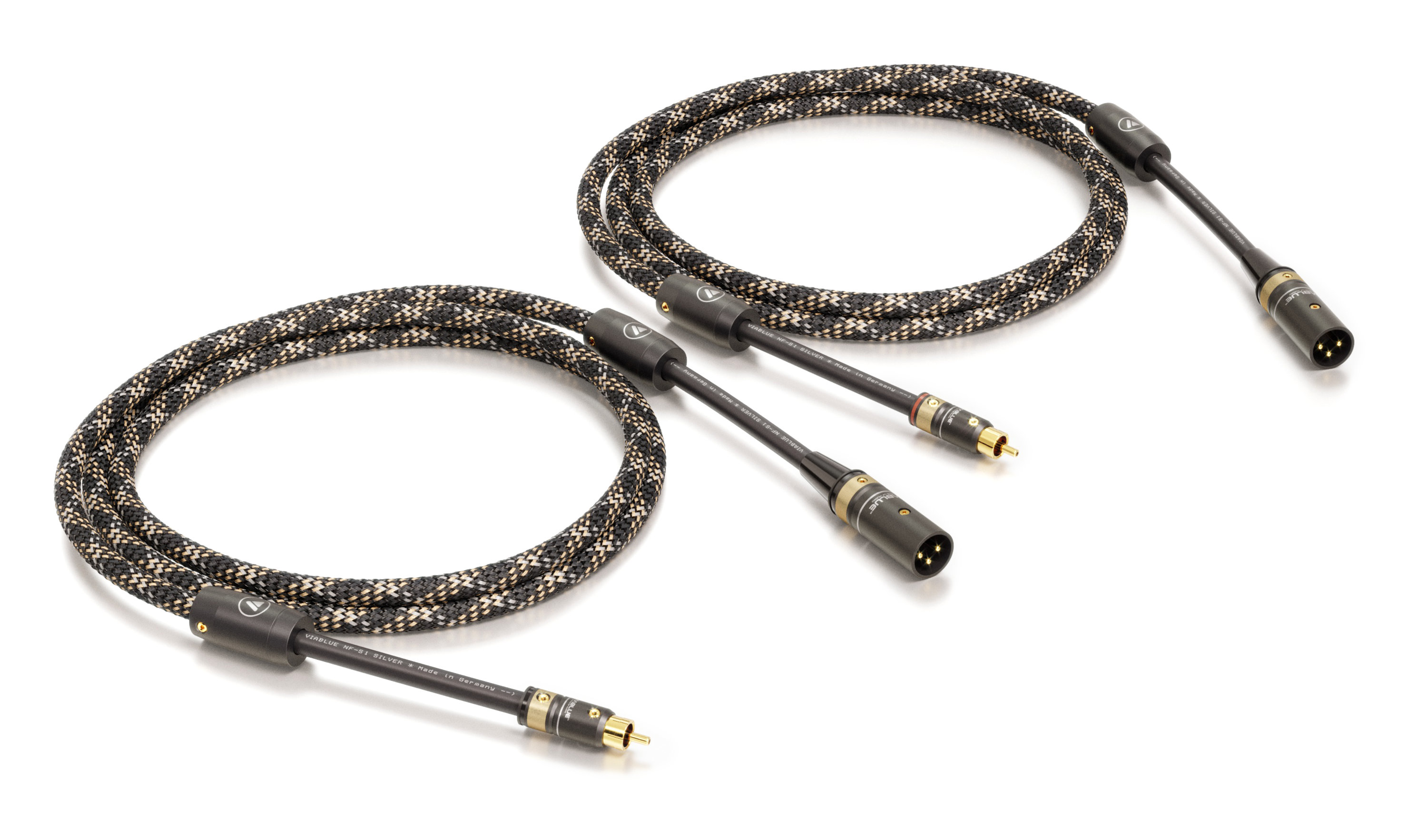 Das NF-S1 Silver Quattro Analogkabel von VIABLUE™ ist mit vier Schichten ausgestattet, darunter eine Abschirmung aus versilbertem Kupfer und eine Isolation aus PTFE (Teflon), um Interferenzen zu reduzieren.