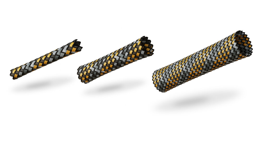 Je größer der Ø eines Kabels, desto mehr Länge wird benötigt, da sich der Geflechtschlauch durch das scherenförmige Aufweiten entsprechend verkürzt. Die folgende Tabelle zeigt einige Beispiele für Längenverhältnisse auf: